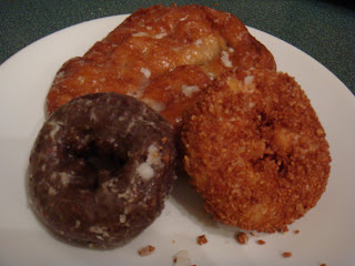 John said the donuts were delicious. What a relief–they really were as good as Holt’s. He didn’t say much about the apple fritter, probably because he was busy going on and on and on about the cinnamon crunch donut. He said it may be the best cake donut in KC. Whoa! That’s a big statement. He then said the devil’s food donut melted in his mouth yet wasn’t mooshy moist, just good cake that somehow became melty. Still not sure if he actually liked this place…