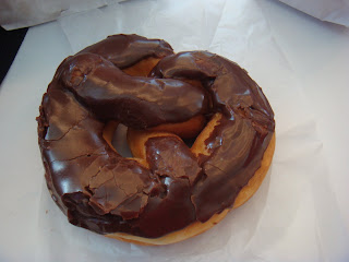 John also spotted a French Crueller that was completely frosted with regular glaze and then dipped in chocolate. The verdict was that it was a little too sweet but soft, fluffy dough waited inside all of that sugary coating.