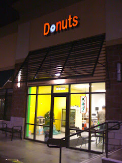 I first visited this donut shop way back in July. Em had noticed it in a new shopping area and said a banner was hanging on the outside that just said “DONUTS.” I stopped by and found it not yet open for business. I’ve since been by a few times, every time peering in the door to see large bags of donut flour stacked on the floor, everything looking like they could open any day. My friends Dave and Charlotte live nearby and I asked them everytime I saw them if the new donut place was open. It seemed like it took forever for this place to get up and running!
