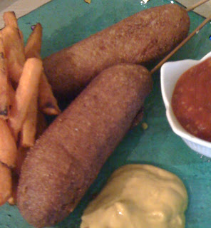 Today is National Corndog Day.  When I stopped eating gluten, I didn’t think I would ever again have fried mozzarella sticks, onion rings or a corndog.  I was really sad about the corndog.  It has always been a challenge to have a vegetarian corndog but I found frying anything that did not contain gluten to be disastrous.  Until today.