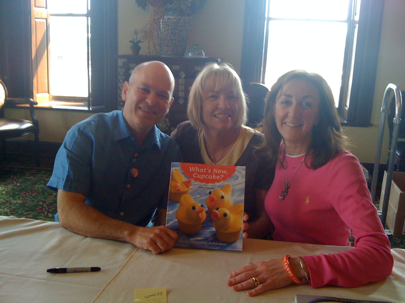 And about that baking competition…both of us girls who were brave enough to enter received lovely prize packages. I got a gift certificate to the Webster House, Ziploc bags, vanilla extract, a box of the crazy new neon food coloring and some of those snazzy new cupcake wrappers that are foiled lined so the pretty paper stays pretty even after it is filled with batter. The wrappers I won were green with a daisy imprint, perfectly matching my contest entry. I guess now I am award-winning baker, or prize-winning or something. I’m not sure what to call it, except a really great experience. Here’s a link to Karen and Alan’s blog entry featuring my contest entry.