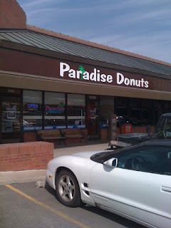 I had never been to a Paradise Donuts outside of Tulsa.  In Tulsa, there seems to be a Paradise on every other corner, almost like Dunkin’ Donuts in Boston and Chicago.  But in all of the ones I visited in Tulsa two years ago, it was obvious that each location was it’s own unique and locally-owned small business.  I went to one not far from the zoo in Tulsa and was greeted by both a husband and a wife, two smiling little faces both sticking out of the drive-thru window to tell me all they had left for the day was donut holes.  A bit odd, but cute and the donut holes were delicious!