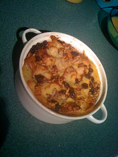 I thought about making a pizza, but truthfully what I do with their pizza crust is pretty typical, no super gourmet toppings other than an occasional Trader Joe’s bruschetta out of a jar and some goat cheese. Nothing that seemed contest worthy to me. I stared at a loaf of Udi’s sliced bread for quite awhile until it hit me: bread pudding! But I didn’t want to make bread pudding out of sliced sandwich bread. Then I recalled the lady that owned the diner in my hometown used to make bread pudding out of Honey Buns. It was some of the best bread pudding I have ever had, even though Honey Buns on their own aren’t that great. If I started with Udi’s cinnamon rolls, what would the bread pudding turn out like? It turned out so delicious that I ate four servings of it…dinner on the night it came out of the oven, breakfast the next morning, dinner that night and then breakfast again. I was relieved to find it completely gone at breakfast because as long as there were leftovers, it was going to call out to me. I’ve never been so tempted with one of my sweet treats, usually eating just my one allotted serving for the week and sharing the rest. This week was nowhere near that easy. This bread pudding was DELICIOUS!