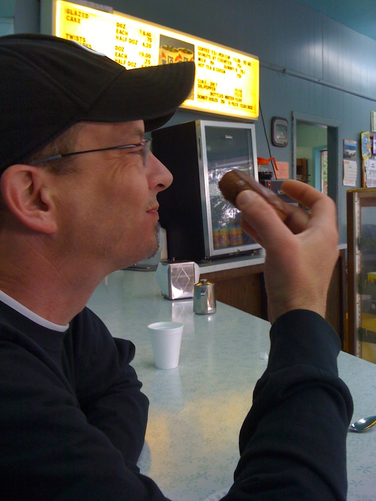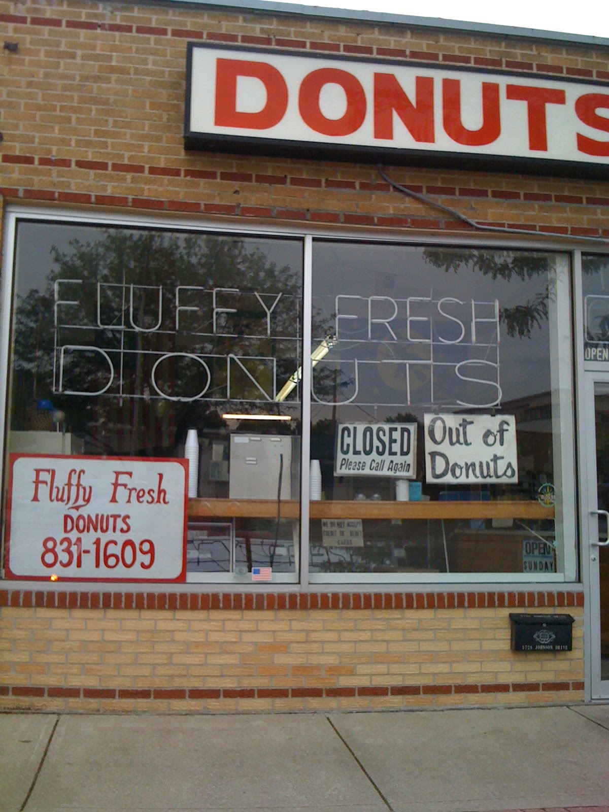After I left John’s Space Age, I went to Fluffy Fresh Donuts on Johnson Drive in an attempt to support another local donut shop on the one day I thought their business might feel the effect of a new donut shop opening nearby. Instead, I was met by this sign hanging in the window: