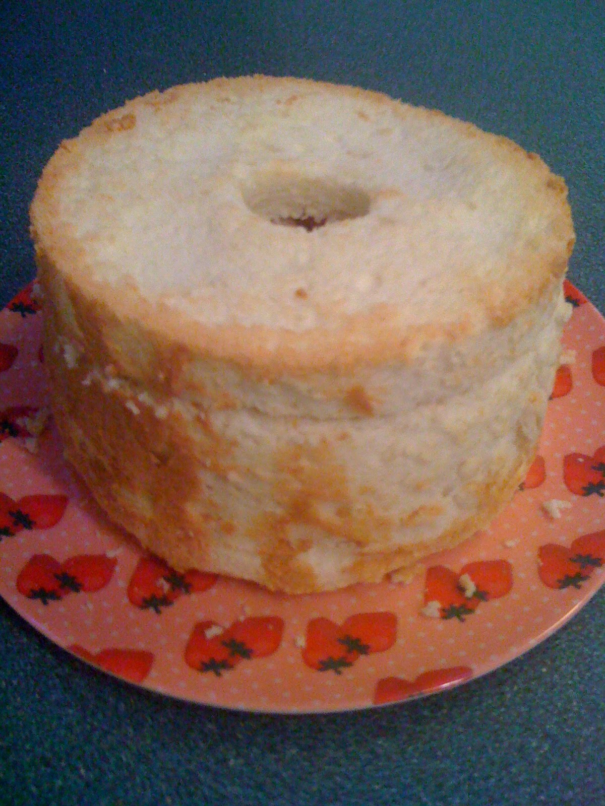I chose this week’s sweet for two reasons. First, I had a lot of eggs I needed to use (more on that later). Second, I had been dreaming of angel food cake and wanted to try de-glutening it. Good enough reasons to mess with a classic in my book! The results were good, the flavor very reminiscent of a traditional angel food cake. The texture was a bit off, a little too moist and heavy, easily cut with a standard cake knife, not a bread knife. I’m still pleased with the result.