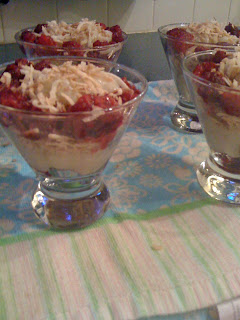 I had to come up with something to do with these muffins! I also had a pint of raspberries left from the berry picking adventure at Lawson Brothers Farm. I love raspberry and lemon together, such a great combination of tart and sweet. I also added a touch of coconut because I think it works well with both flavors and I was craving it. I decided to make a trifle of sorts, only in single serve portions so I could share with a friend.