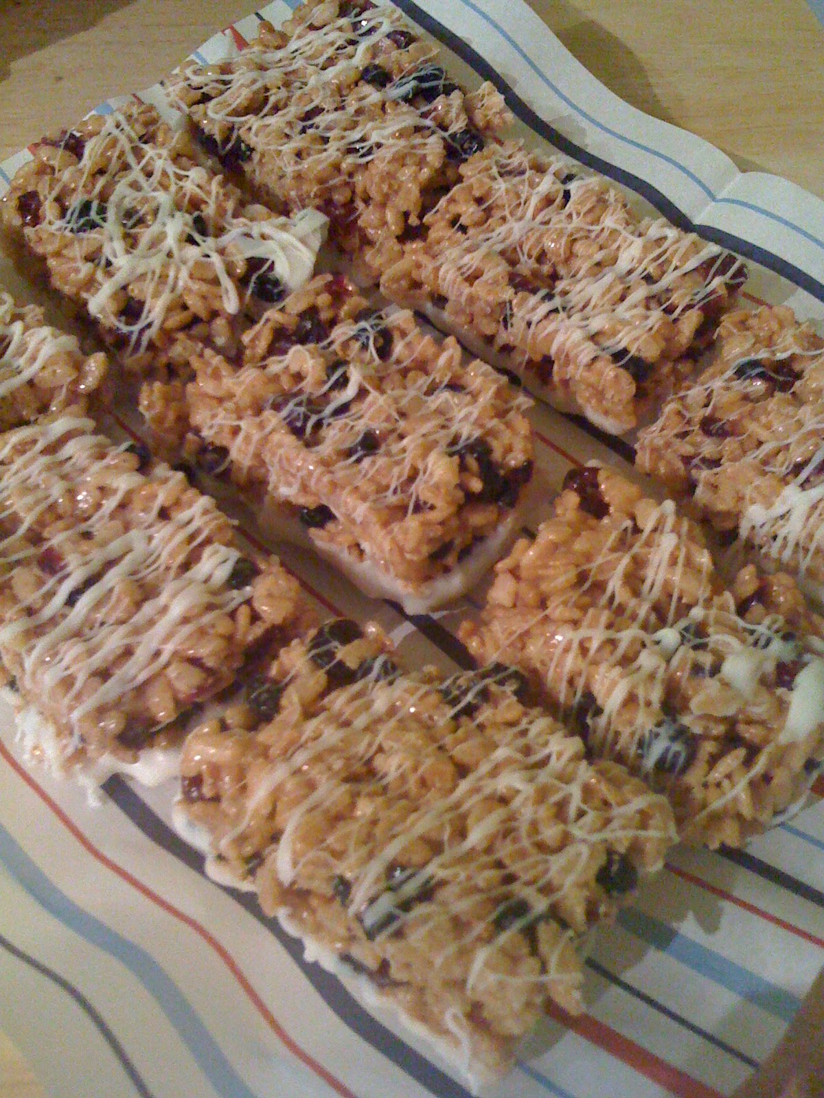 What follows is my variation of the traditional Rice Krispie treat. Once rescued from near-failure, they turned out very tasty.