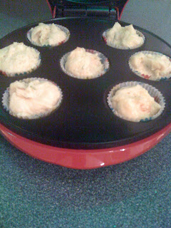 4. Add balls to mini cupcake papers and place into mini cupcake maker for 10-12 minutes.