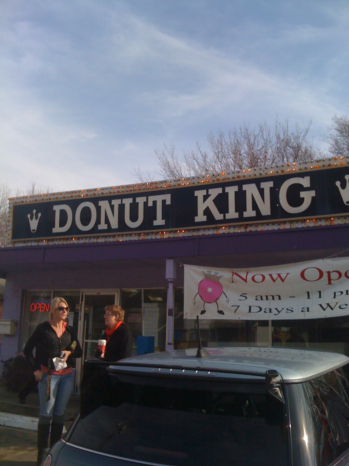 I offered up a sixth location, but thought most folks would be exhausted and stuffed after visiting five donut shops. I was wrong. More than twenty folks headed north to Donut King. My driving directions said, “Donut King will be on the right, past the Gentlemen’s Club, before the tattoo parlor and used car lots.” I neglected to mention it is also across the street from the Discount Smokes shop. It’s an interesting area and always good for people watching. Plus the seasonal flavors here are divine! On top of the favorites list of those that visited all six donut shops was the pumpkin donut at Donut King. (Update 05/11: Donut King has relocated after 42 years in the funky little purple shack on Chouteau. Donut King is now located at 2320 Armour Road in North Kansas City.)