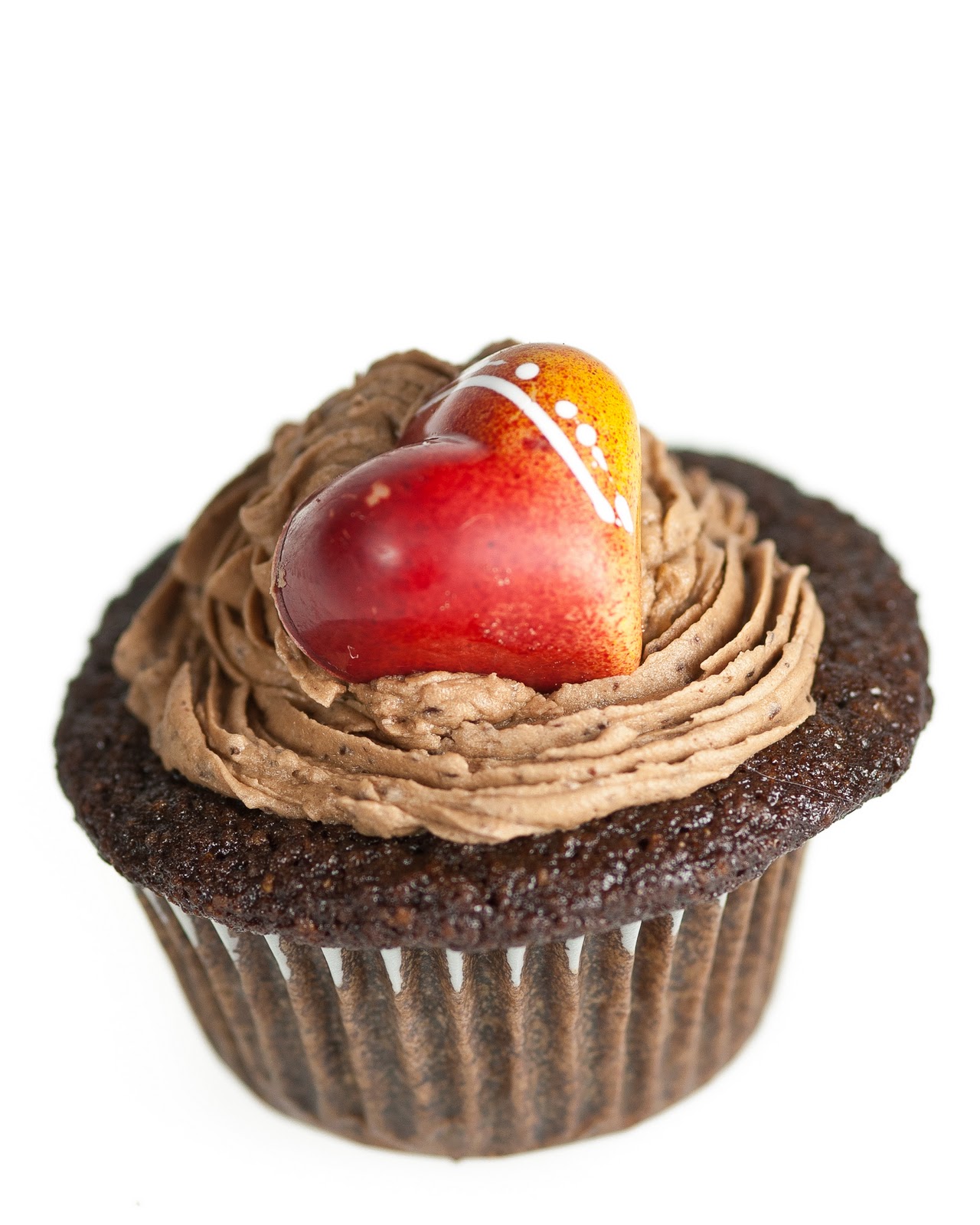 Top with a Christopher Elbow chocolate of your choice.  I used a handpainted chocolate heart on a few, topping the remainder with pieces of “The Patric Project” chocolate bar, a 70% dark chocolate blend created in collaboration with Patric Chocolate, a bean-to-bar chocolate company in Columbia, Missouri. (I mentioned being spoiled earlier. We are seriously spoiled with amazing chocolate in Missouri, with Christopher Elbow and two bean-to-bar chocolate makers!)