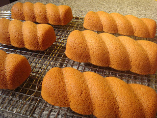 I used the recipe on page 128 of the cookbook. Scoop 3/4 of a cup of batter into each area of the donut twist pan. Bake for 10 minutes at 325 degrees. Turn pan 90 degrees and bake for another 10 minutes (20 minutes total baking time). Test with a toothpick or cake tester. Let donuts cool in pan for 10 minutes. Invert pan onto cooling rack and let donuts cool another 10 minutes before dipping in glaze. During the final 5 minutes of cooling time, mix the glaze.