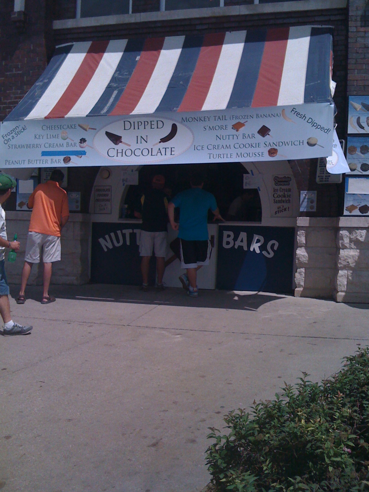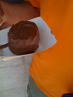 On a Monday, after the weekend rush, they were out of Tiramisu on a Stick. John settled for the Key Lime Pie Dipped in Chocolate on a Stick. It was $4.50, which seemed to be the most common price for Food on a Stick at the Iowa State Fair.