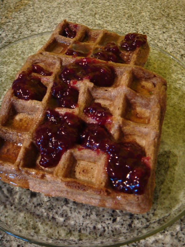 Using a standard waffle maker, pour scant 1/2 cup batter into each waffle cavity. Cook until done.