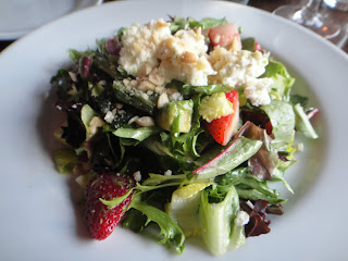 I had the Strawberry and Goat Cheese salad, which was on a bed of baby greens and topped with avocado and toasted hazelnuts.  Our server confirmed with the chef that my choice was indeed gluten-free after I ordered and also shared with me that the chef had gluten-free pasta available should I want a heartier meal.