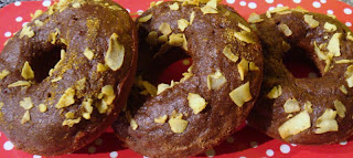Fill each cavity of the donut pans with 3 T. of batter. If making muffins, fill muffin tins with a scant 1/3 cup of batter. Sprinkle top of batter with coconut and curry mix. Bake donuts for 11 minutes at 350 degrees, muffins at 350 degrees for 22-24 minutes. A toothpick or cake tester inserted into center will come out clean when done.