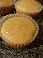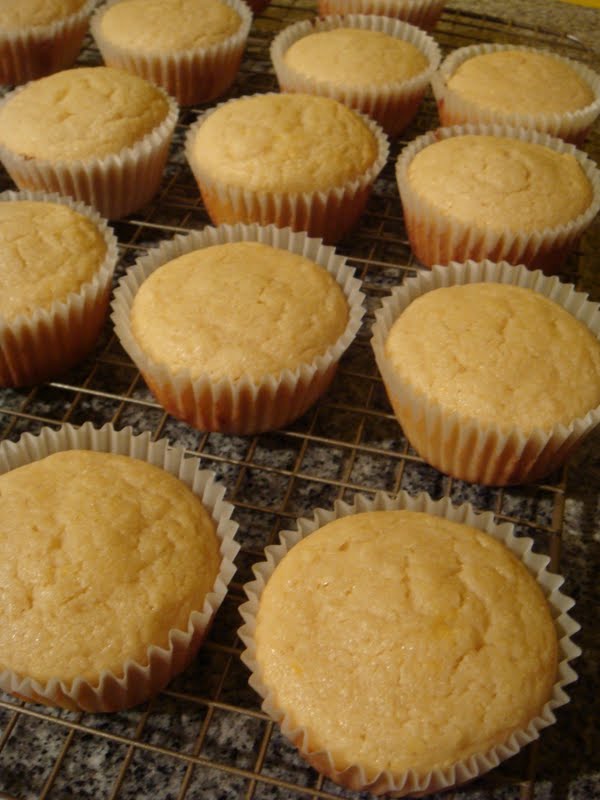 Insert cupcake papers into pans, fill with scant 1/3 cup of batter. Bake for 18-20 minutes. A toothpick or cake tester inserted into the middle will come out clean when these are done.