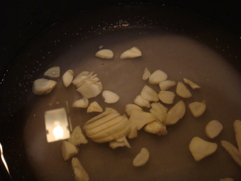 Using a mortar and pestle, mash the reserved garlic slices from the simply syrup recipe. Set aside.