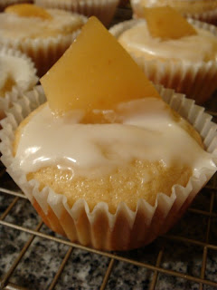 Next, add a generous teaspoon of Lemon Glaze to the top of the cupcakes. If the cakes are still slightly warm, this will help the glaze to spread more easily.