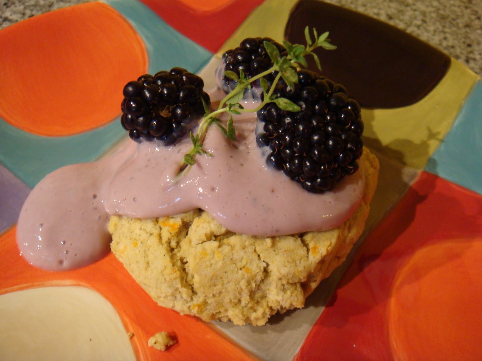 Place one shortcake on a plate. Top with a dollop of Blackberry Orange Quark, a few fresh blackberries and a dusting of powdered sugar if you’d like. I also add a sprig of fresh oregano from my garden for garnish.