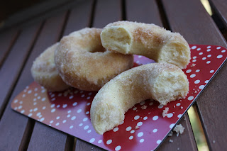 Inside the Le Petit Rouge bakery case, these waited for me. One plate of beautiful, cinnamon sugar-crusted baked donuts: