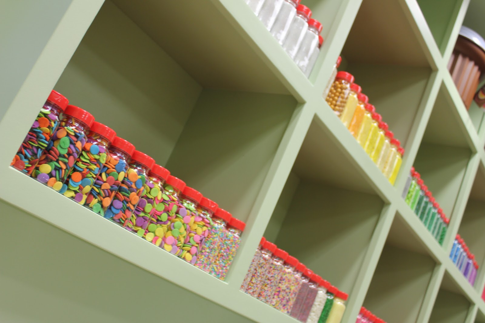 Boy, was I in for a treat. I arrived at Sweet! and soon realized this is my version of kid-in-a-candy-shop. The store is adorable, packed full of every color of sprinkles, sugars and cupcake papers you would ever need. Frosting tips, pastry bags, novelty baking pans and packaging perfect for sharing home baked treats were arranged in a way that makes sense, a way that makes shopping fun.