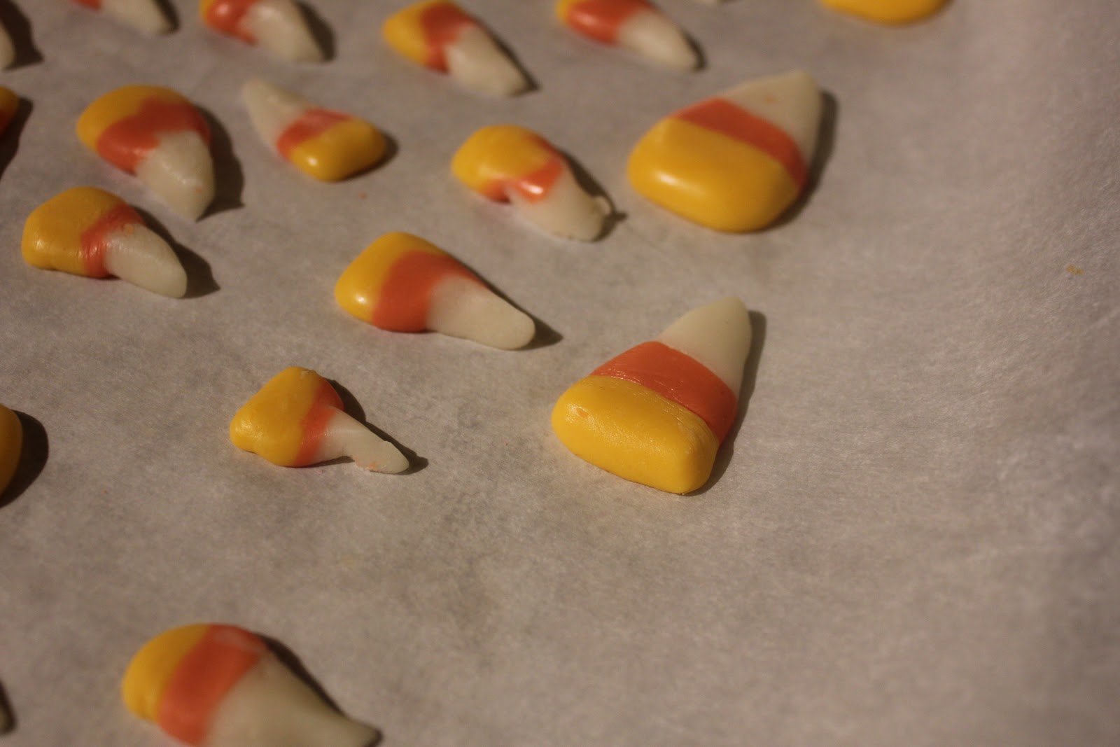 While I’ve just scratched the surface of Good Eats 3, so far I’ve really enjoyed it. The first recipe I tried to make was homemade candy corn. As Alton says, everything in the kitchen is science and my attempts to remove the cow dairy from the recipe failed horribly. I think it is related to protein micrometer variances in cow milk and goat milk, as well as the presence of saturated fat in butter as opposed to non-dairy substitutes. See, I learned something from Alton Brown! When I followed the instructions, it turned out well and even tasted like candy corn. I used it as a topper on my Halloween cupcakes, a variation on these.