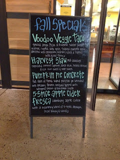 My husband and I decided to split the veggie burger and fries so we could also try the Taco-of-the-Day. The Voodoo Veggie Taco included Anjou pear, roasted sweet potatoes, spice toasted pumpkin seeds and a cranberry hickory sauce drizzle with queso fresco. Doesn’t that sound delicious?