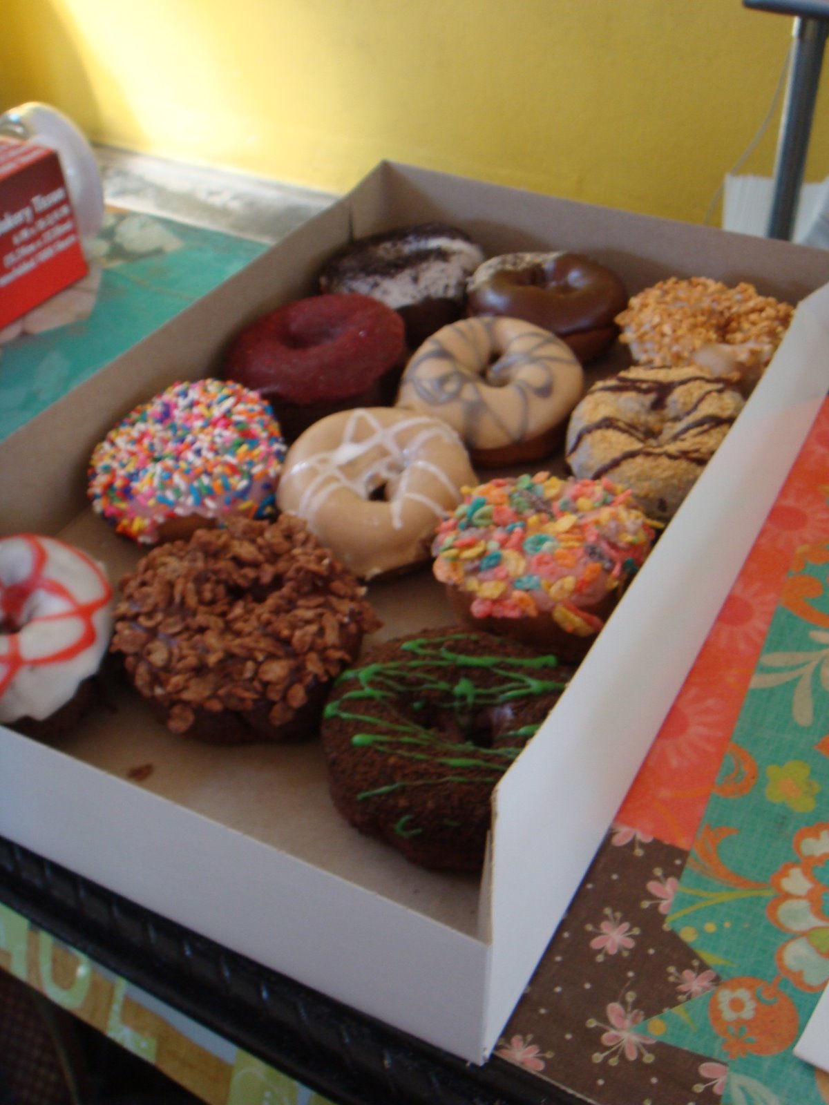 The article points out that between 2010 and 2011 the amount of “doughnut-dedicated content” on Serious Eats rose roughly eighty percent. I was so ahead of this trend way back in 2009 when I started this crazy donut blog. For a minute, I did think donuts, specifically novelty donuts topped with Fruity Pebbles and Tang or Maple and Bacon, would be the next cupcake. So far that hasn’t happened and I still live in a donut desert with not a single novelty donut shop within 3 hours drive. Oh, Donut Whole, won’t you please come to Kansas City?