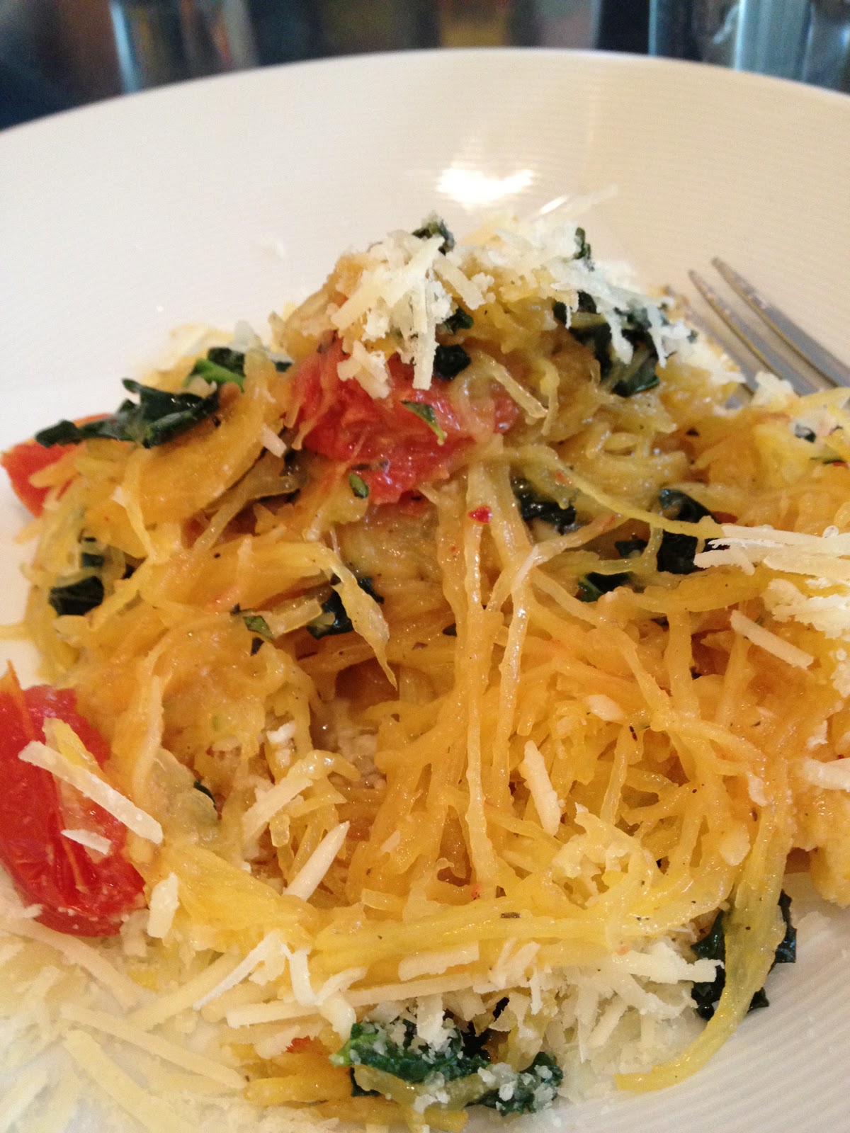 My entree was spaghetti squash with kale, chile flakes, tomatoes, fresh herbs and olive oil.  This is not the dieter’s version of spaghetti squash, it was rich and filling.