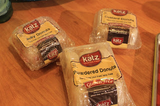 Recently, Katz Gluten-Free has added donuts to their sizable collection of baked goods.  I ordered everything they have to offer: jelly donuts, custard donuts and powdered donuts.  The Katz donuts are the first gluten-free filled donuts I have had that weren’t made in my own kitchen.