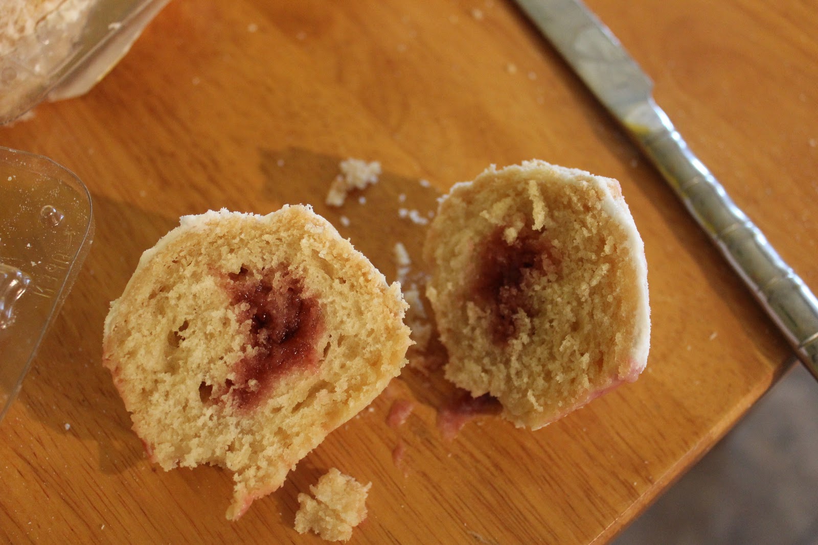 The jelly and custard filled donuts are interesting–more baseball shaped than filled donut shaped, kind of like a giant fritter.  All three of the donuts, the filled varieties and powdered sugar, tasted very similar.  They aren’t quite as light and fluffy as a gluten-full fried donut but they also aren’t a cake donut.