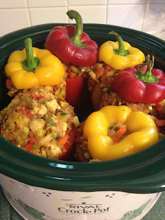 A nice side benefit of this dish is that you will end up with about 2 cups of vegetable broth.  As the stuffed peppers cook, the liquid from the vegetables will magically appear in your slow cooker.  Save this and use it for another dish!