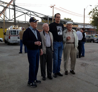 A few hundred folks gathered at the break of dawn and stayed until mid-morning. I spotted a couple friends and a handful of KC’s well-known chefs. Plenty of folks in the crowd were wearing military aviation caps and TWA shirts. I saw Danny O’Neill, founder of The Roasterie, mingling in the crowd. He stopped for photos with lots of people, including this group of Douglas C-47 pilots.