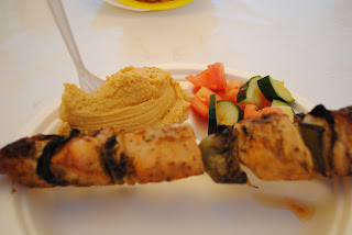 I dug into the hummus. It was a bit salty. Almost like it came from a tub. Which wouldn’t surprise me. Then there was the “salad” of cucumbers and tomatoes. Nothing really to write home about. It was plain. And the kebab.