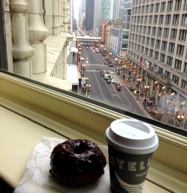 My absolute favorite way to spend a chilly day in Chicago: a Do-Rite gluten-free donut and a steaming cup of Intellegentsia Coffee from my favorite hotel room with a view.