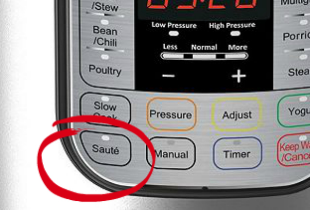 Add the liquid from either your recipe ingredients or the water that goes beneath your trivet and turn on the saute feature.