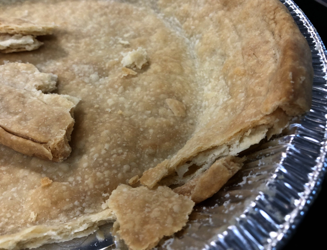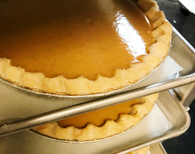 The filling is identical to ours, right down to the aged pumpkin, which we shipped to Emily Kate’s to use. They also have our top secret filling recipe, our pie tins and our plastic pie domes, so the crust is the only variable.