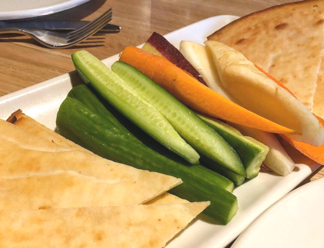 We ordered the For the Table starter: kale guacamole, herb hummus and black olive dip with vegetables and gluten-free pita. The kale guacamole has a bit of grapefruit mixed in, the perfect bit of tangy. The hummus is smooth, creamy, a tinge of bitter from tahini. The black olive dip was my favorite of the three. We had more than enough dip to go with the vegetables and gluten-free pita.