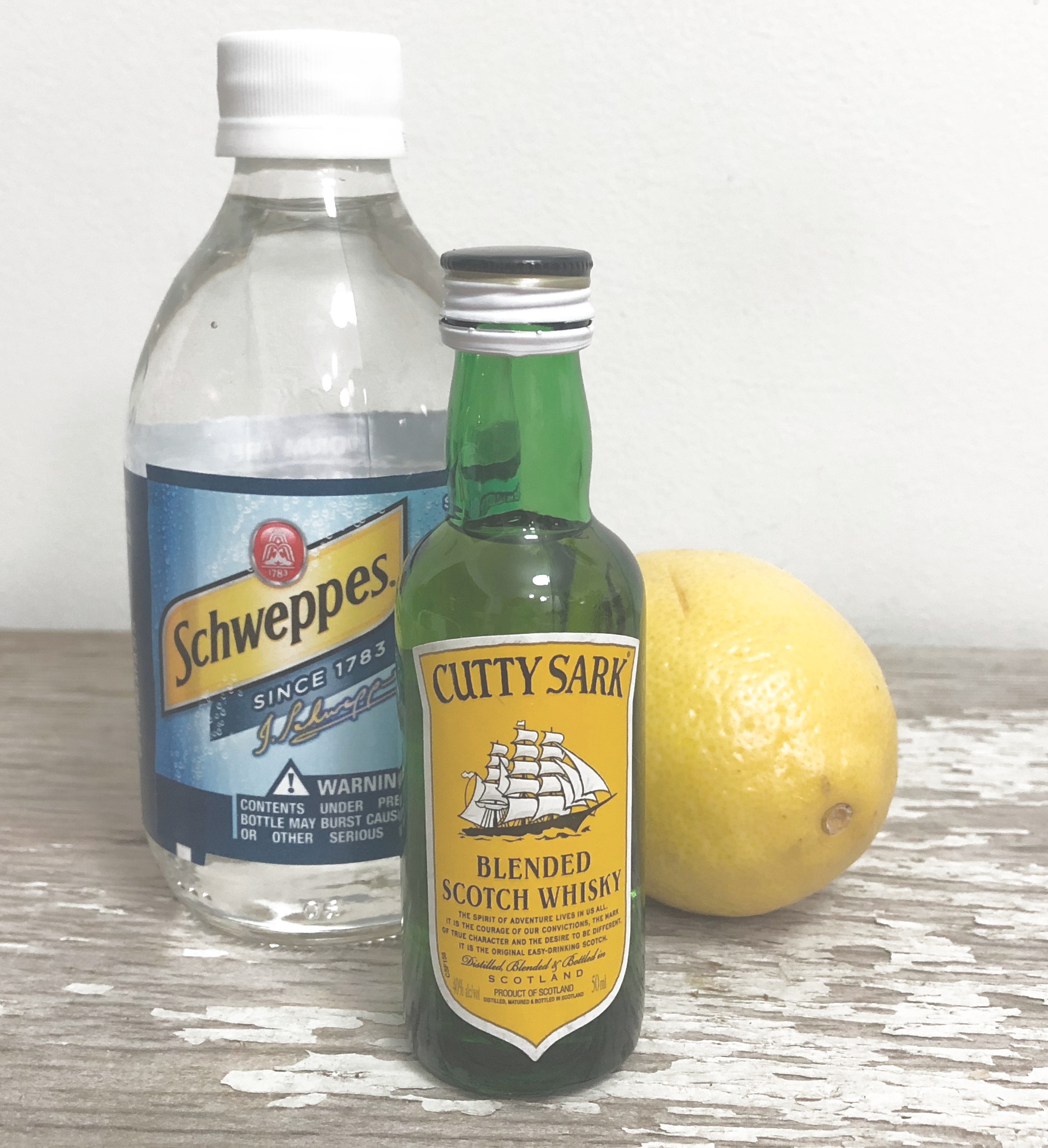 There is really no recipe to share for Scotch and Soda. You can choose your preferred scotch to soda ratio. I used one mini bottle of scotch and most of the small bottle of club soda. Those little club soda bottles remind me of the New York Seltzer bottles from the 1980’s which are now back in stores. I don’t think I’d care for raspberry seltzer with Scotch, but maybe you’d like it?