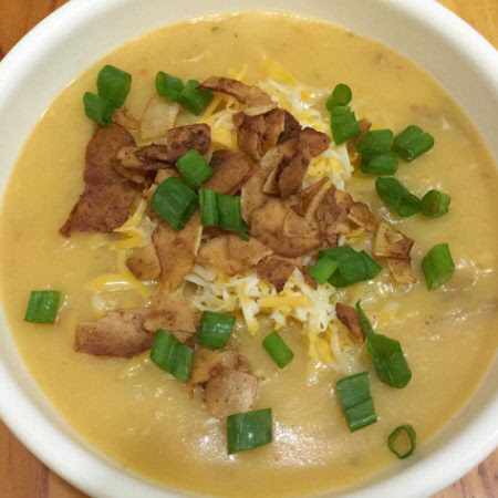Another place we used coconut bacon this week, to top my Potato Vegetable Chowder. My favorite fella made a batch of this in the Instant Pot. We shared a little of it with a friend who is vegan, froze about half of it and made three meals from the rest. I love a big batch soup, stew or chowder.