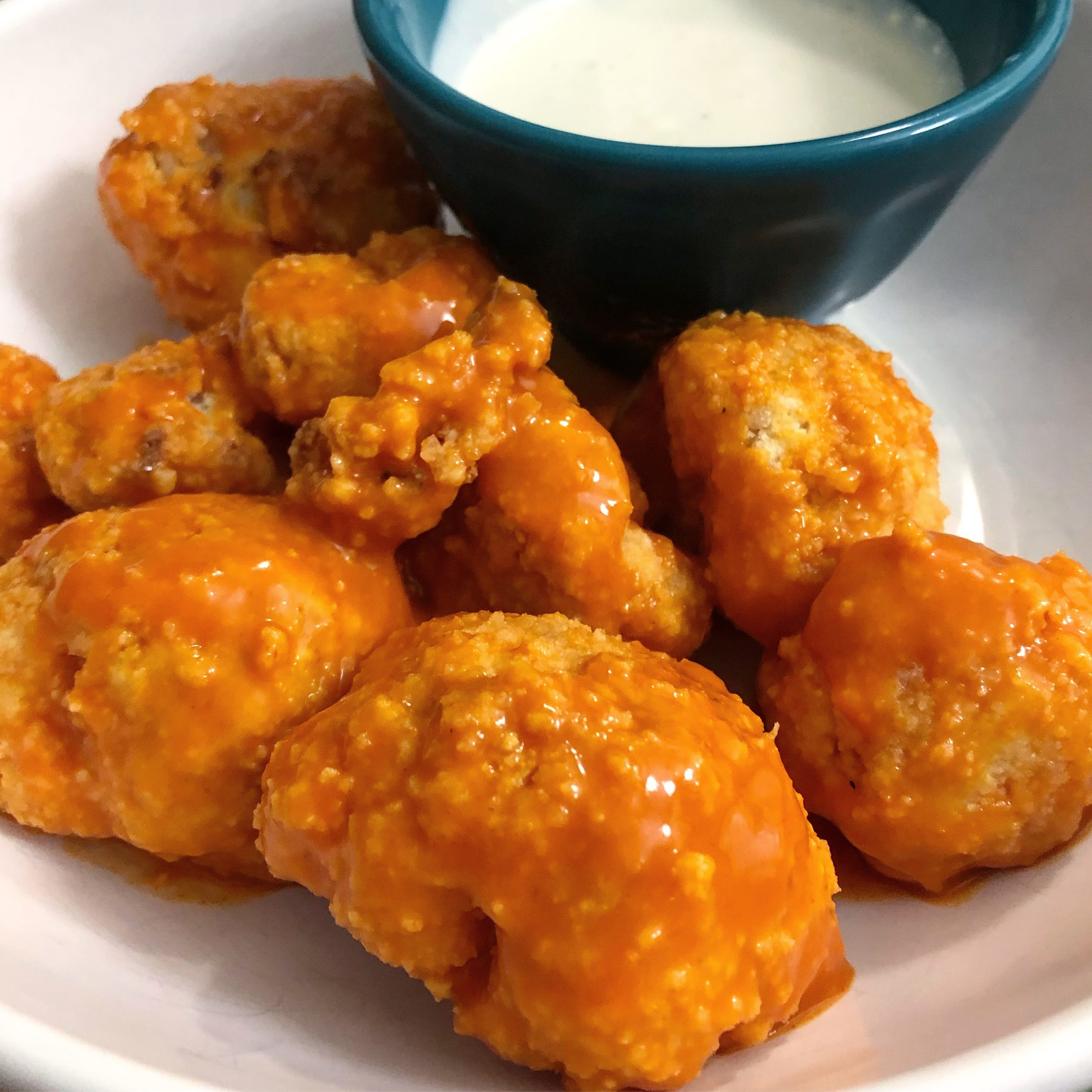My favorite dinner in the last week was baked Buffalo cauliflower bites. I started with this recipe from my favorite movie theatre, Alamo Drafthouse.