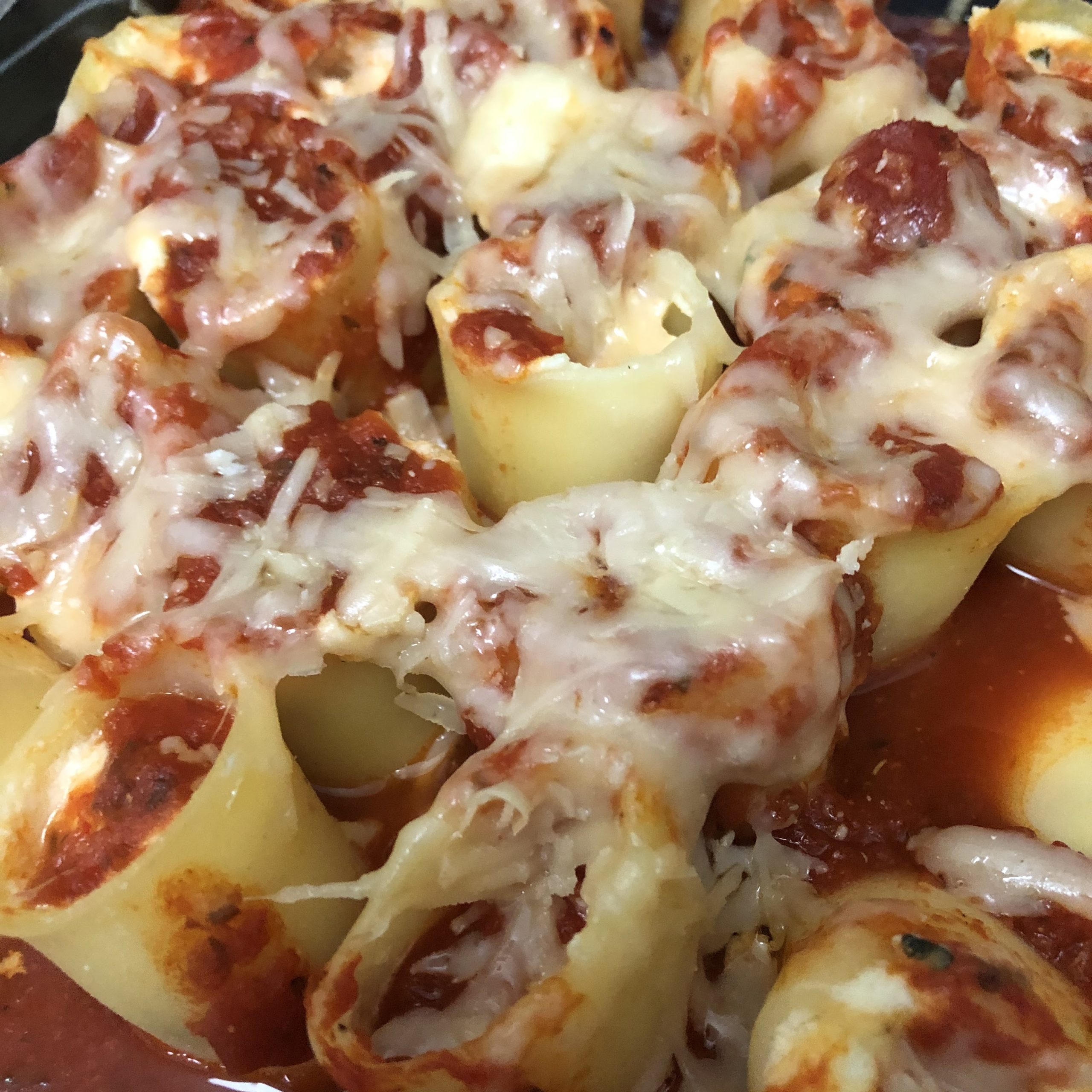 One evening we made stuffed pasta with Morelli’s paccheri from Italy. It’s available on Amazon or has been. It’s a tubular pasta, about 2″ in diameter and about 2.5″ tall. It’s sort of a mini manicotti. I bought this while in Italy, my fella cooked it and never could get it al dente where we were staying. Boil your water to a serious roll and be prepared to cook this a few minutes longer than the package said. I had saved it for a special occasion. Got anything like this lurking in your pantry? I think any day qualifies right now as a special occasion. I made a manicotti type filling and piped it into each little tube, placed them in an 8×8 baking dish, topped with sauce and shredded cheese. It was a lovely meal, even if it didn’t photograph well.
