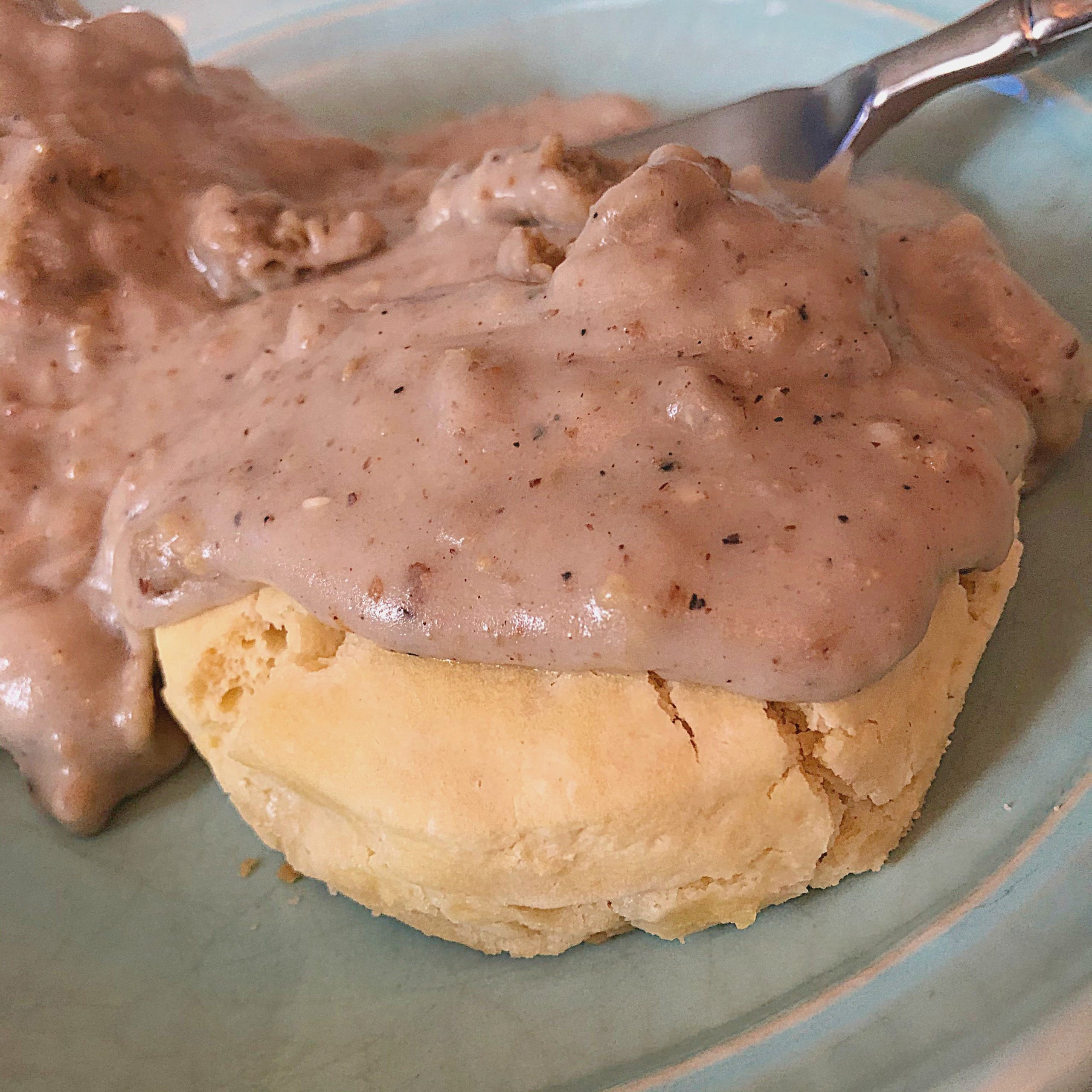 My birthday was two weeks ago. My favorite fella surprised me with biscuits and gravy for breakfast. He made these biscuits but added 1/2 cup of my favorite gluten-free flour blend to get the dough to pull together. Please note: my flour blend does not include xanthan gum and it was not added to this recipe. I find it is not needed as often as we used to believe in the earlier days of gluten-free baking and often omit it with great success. This recipe made terrific biscuits that were even good the next day. (I had a fried egg over my B&G the second day.) The gravy was made with this Pioneer Woman recipe, simply substituting my favorite flour blend and almond milk. He used five patties of the Hillary’s Eat Well breakfast sausages. It was my favorite meal of the entire week.