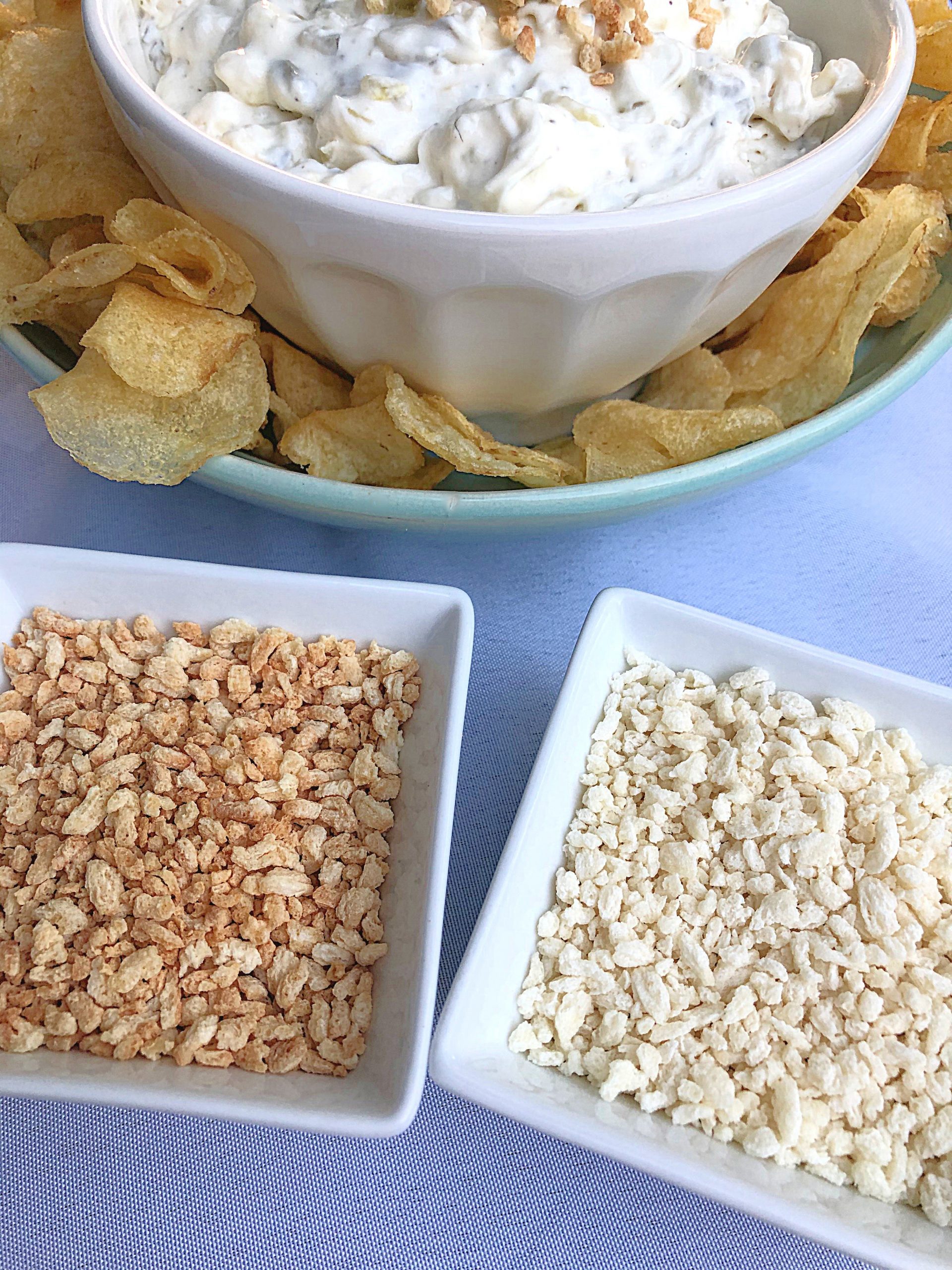 My friend Renee snagged the original gluten-containing dip for me at Sam’s Club, my friend Brian provided texture and accompaniment input as I developed the copycat version and then my taste testers who can eat gluten got busy doing a side-by-side taste comparison.