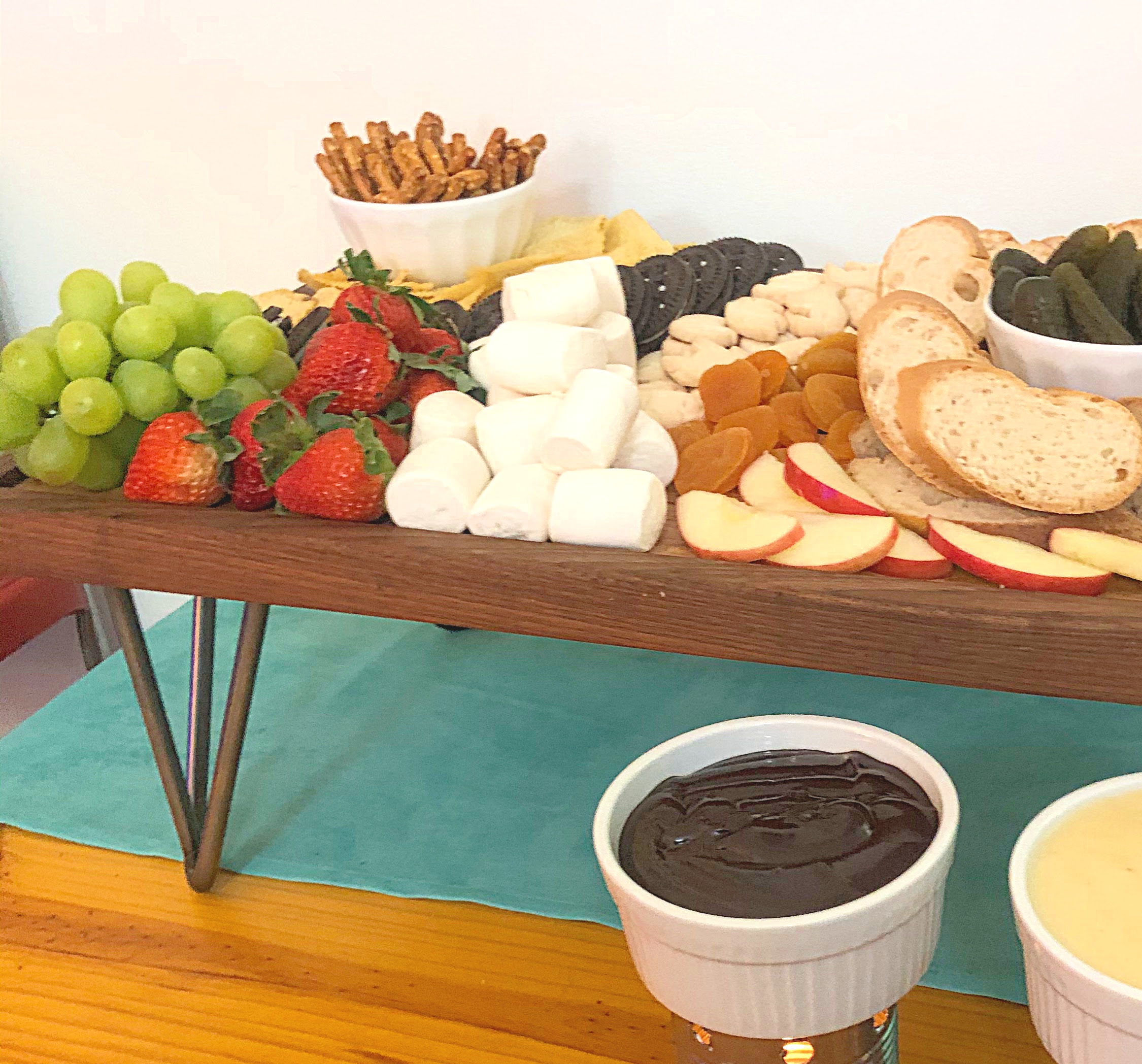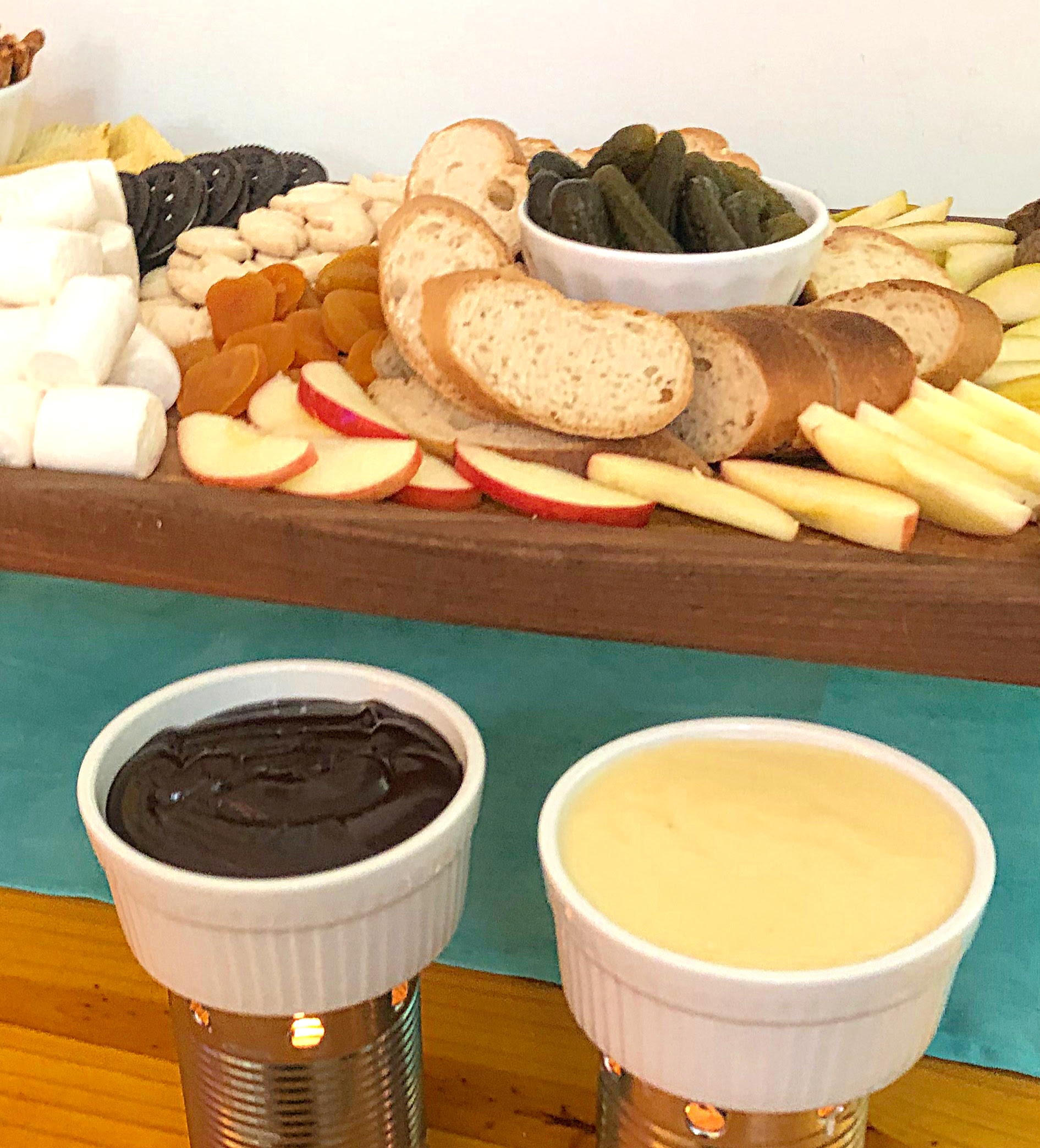 Are you obsessed with graze boards? I make them often but in the cool weather months, having a warm element is a comforting, cozy addition. I’ll show you how to make a fondue board, savory and sweet below!