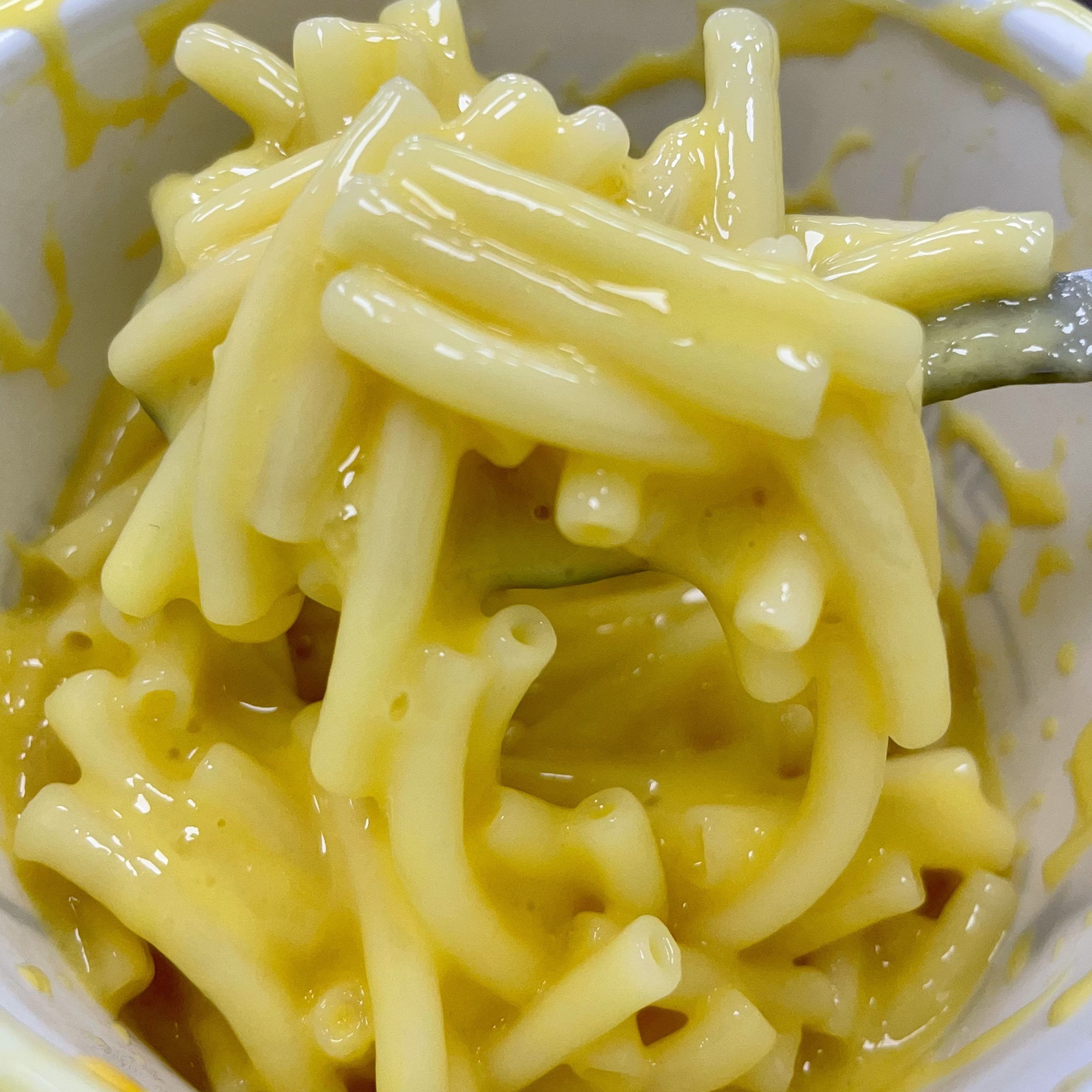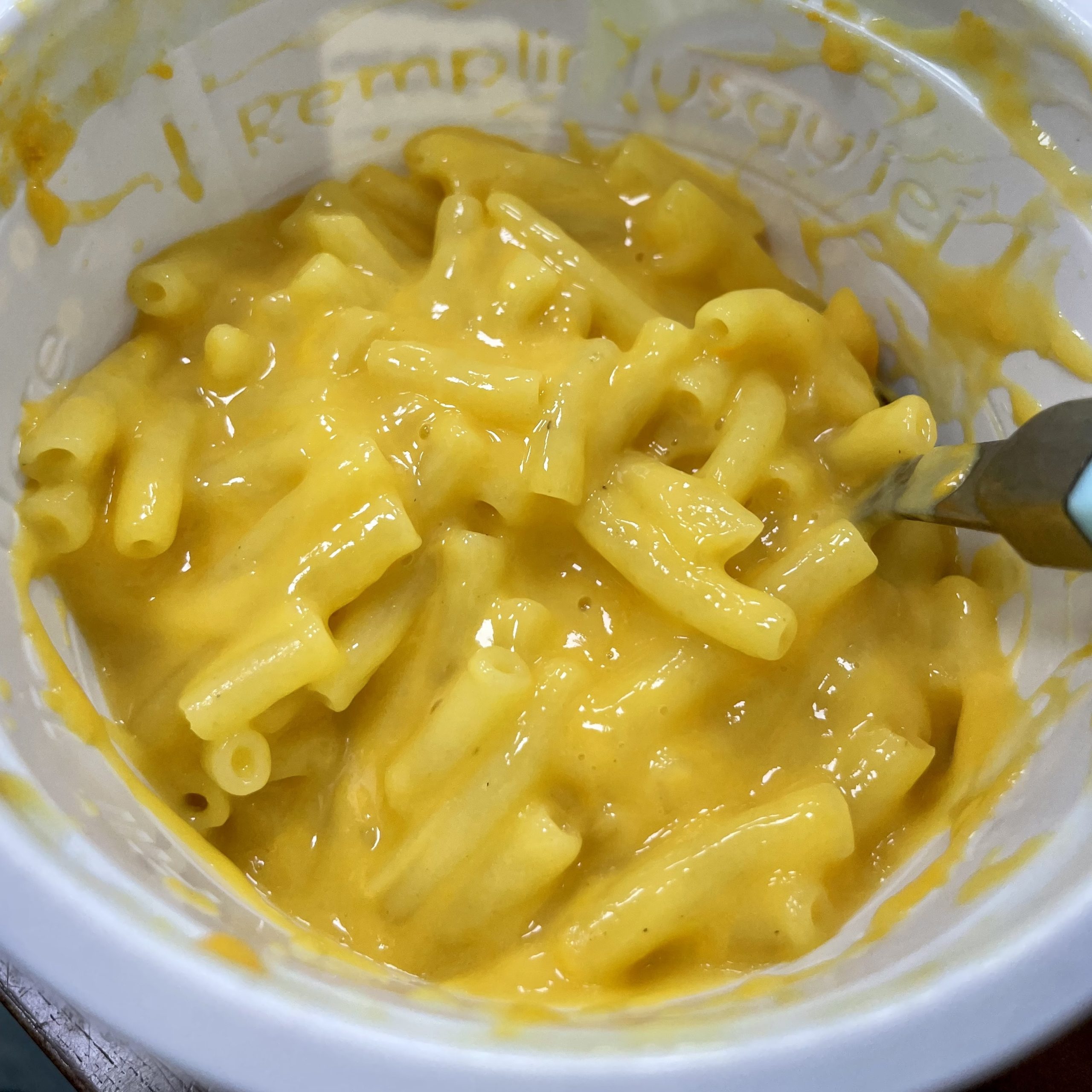 First up, the tried and true Annie’s Rice Pasta & Cheddar cup. Rice noodles in a cup with tapioca starch and a separate packet of powdered cheese.